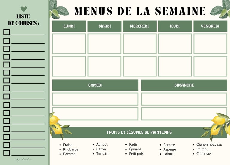 Pour une semaine équilibrée, savoureuse et bien organisée, c’est par ici.